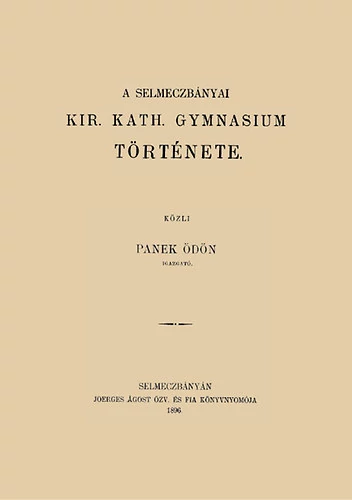 Hazánkban kevés oly érdekes tanintézet van, mint a Selmecbányái kir. kath. ősi, változatos és viszontagságos múltú tanintézet. Ősi, mert eredete messze, az Árpádok korába a kereszténység XIII. századába vezet; változatos, mert egy középtanintézet sem tud felhozni annyi korszakszámba menő átalakulást viszontagságos, mert egy középiskola sem tud felmutatni annyi szenvedést, küzdelmet és csapást, mint a selmeczbányai kir. kath. gymnasium. Épen azért viszontagságos múltja részvételre gerjesztő, és pedig annál inkább: mert nem ismerünk oly szomorú hazai eseményeket, melyekben a tanintézet a mindnyájunk édes anyjával, a hazával és annak nagy történeti múltú városával, Selmeczbányával nem osztozott volna. A tatárpusztítás, a török hódítás, Tököli, Bethlen, Bocskay, Rákóczy mozgalmai, a vallásújítási villongások iszonyú nagy sebeket ütöttek Selmeczbánva városán és annak kalholikus iskoláin. Ezeken kívül Rozgonvi Simon kegyetlenségei; 1679. és 1710. évi pestis; továbbá 1443. 1639. és 1692. évi földrengések felejthetetlen gyásznapok maradnak Selmeczbánya történetének lapjain (Bél Mátyás.) közli Panek Ödön. – [Selmecbánya] Selmeczbányán : Joerges Ágost özv. és fia 1896. Hasonmás kiadás.