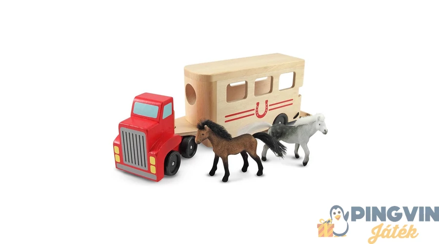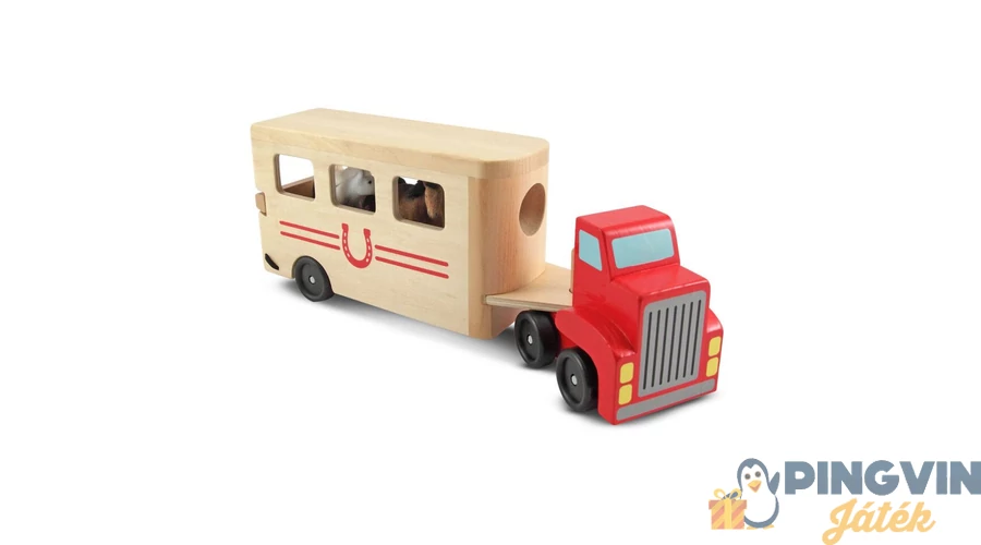 A kamion utánfutójában szállíthatod lovaidat. Az utánfutó rámpája lehajtható, hogy könnyedén fel és leszállhassanak.Kiváló minőségű,szépen megmunkált fa játék.