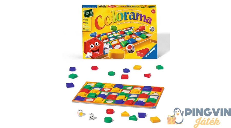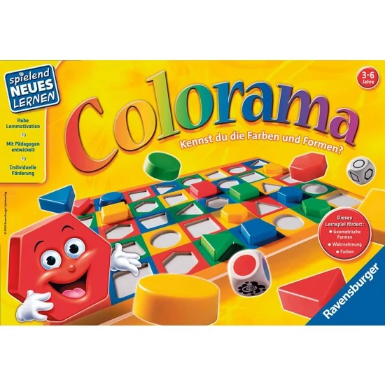 Ezzel a Ravensburger társasjátékkal szórakozva ismerkedhetnek meg a gyermekek a színek és formák sokféleségével. A geometriai alakzatokat a színdobókocka és a formadobókocka segítségével illesztik a táblán a helyükre, vagy veszik el onnan.Ajánlott 4 éves kortól 2-4 játékos részére.